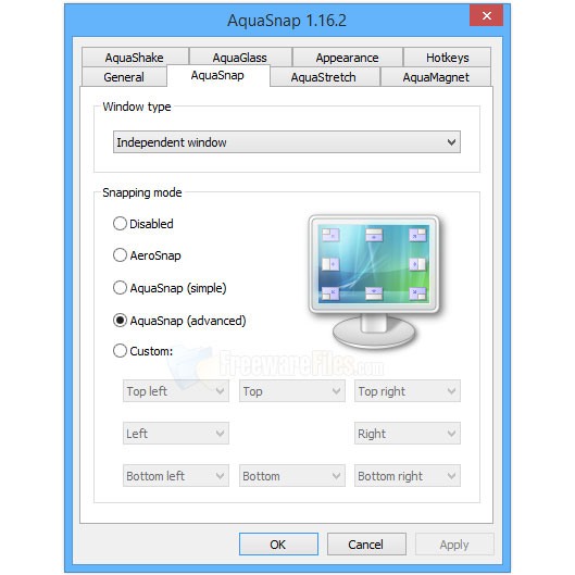 AquaSnap is a free software that greatly enhances the way you can arrange windows on your Desktop. It allows you to snap the windows to the edges or corners of the desktop by simply dragging them where you want.